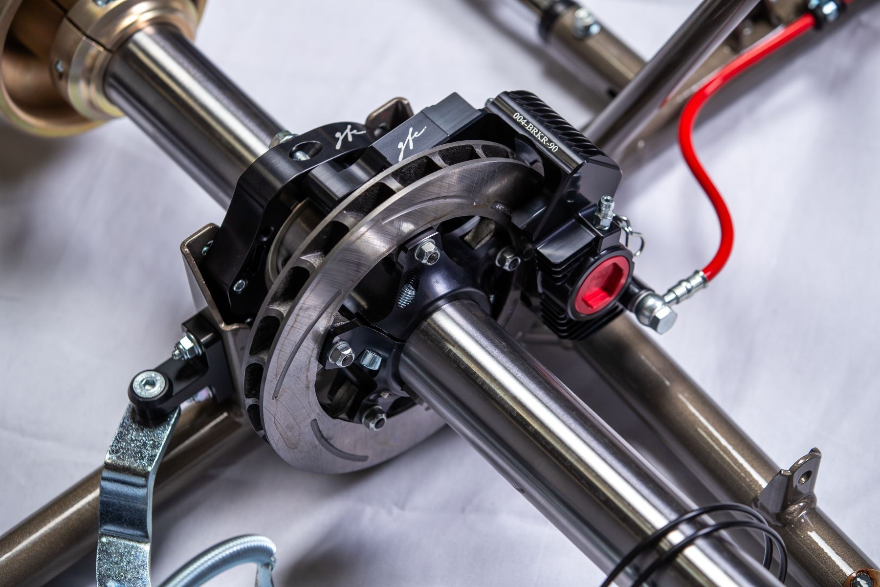 - New front brake disc hub design with fixed non floating design
